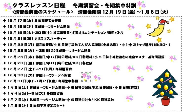 2.クラスレッスン日程 -冬期講習会・冬期集中特訓